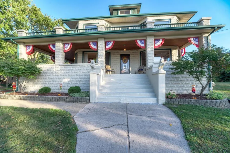 Welcome to the magnificent Dr. John Rust Home! This beautiful architectural treasure combines historic character with modern updates. You won't find another home like this! Beautifully restored, it showcases original hardwood floors, crown molding, custom built-ins, and charming wall sconces throughout. The main level offers exceptional flexibility, ideal for related living or a home office with its own private entrance. A gorgeous double staircase leads to the second floor and a balcony overlooking scenic Willow Springs. The spacious primary suite is a true retreat, featuring a sitting area and a luxurious en-suite bath with a whirlpool tub, double vanity, and separate shower. The large attic provides great storage or potential for more living space, while the basement offers endless options for a game room, TV lounge, or gym. Outdoors, enjoy the wrap-around porch, a detached 3-car garage, and a generous yard with a storage shed. Perfectly located near the Metra, coffee shops, top-rated restaurants, biking trails, forest preserves, breweries, schools, and shopping, this home offers a lifestyle as special as its history. Don't miss the opportunity to own one of Willow Springs' most iconic homes!
