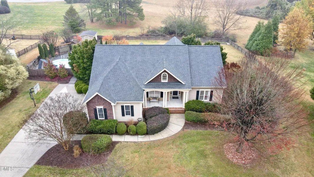 Welcome to 8616 Sunflower Meadows Lane, at the top of a beautiful neighborhood cul-de-sac. This home shows where Wake Forest charm meets thoughtful, spacious design. This beautifully appointed home with the primary on the first floor, a side entry garage offers a rare combination of intentional architecture, generous room sizes, and a floorplan that gracefully adapts to every phase of living - from quiet mornings to full-house celebrations. The main level showcases a stunning open-concept living room framed by nearly 20-foot spans, paired with a warm, inviting breakfast nook, ideal for slow mornings or lively weekend gatherings. The kitchen with a pantry sits at the heart of the home - large, functional, and connected - making hosting and everyday living effortless. The primary suite, tucked privately on its own wing, overlooks the beautiful in ground pool and rear yard, features bedroom proportions that breathe, hardwood flooring, a spacious walk-in closet, and an en suite retreat with double sinks, walk-in shower, jetted tub and ample storage. Three additional main-floor bedrooms sit on the opposite wing, each with easy access to the bathroom - a perfect layout for families, aging-in-place needs, or blended living arrangements. Current owner uses two of the bedrooms for workouts and teen office. Upstairs, prepare to be surprised: A 34-foot-wide bonus room offers a rare canvas for entertaining, movie nights, gaming zones, or multi-use creative space. The HUGE adjacent home office is large enough to support true work-from-home efficiency - or can be repurposed as a studio, homeschool room, or fitness suite. A full spacious bath connects the bonus and office. Outdoor lovers will appreciate the natural setting of this lage private lot *sitting on the front porch, watching the birds and *the beautifully landscaped inground pool with a slide and expansive decking, *inviting screened rear porch, *expansive deck for grilling, *fire pit just outside the fenced rear yard, *garden area and *privacy fenced-buffered yard - versatile enough for relaxation, dining, play or large gatherings. Located minutes from Wake Forest's parks, conveniences, and vibrant community hubs, and golfing, this home lives beautifully in every season. Spacious, comfortable, and designed with timelessness in mind - you'll feel the care this owner has taken in every room. If you're searching for a home that combines space, presence, and an undeniable sense of welcome, then 8616 Sunflower Meadows Lane deserves your attention. Home and pool meticulously maintained; the owner is flexible regarding a closing date - close immediately or in 6 months. So If you're planning on purchasing in 6 months, now is the time to get this home under contract and close later.