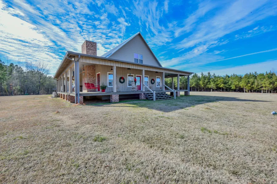 Custom built home on 46.5 Acres. The view from the road is stunning. This quality constructed home includes many upgrades. The home overlooks a stocked pond and has a wrap-around porch. It has pine flooring and walls, and restored vintage doors throughout. Heart pine countertops in the kitchen and a large walk-in pantry. Custom sink in guest bathroom with heated tile flooring. Everything is handcrafted down to the ceiling on the porch. The kitchen is open to the great room and dining room. Beautiful Master suite on the main floor along with one other bedroom. There is an additional bedroom and loft area upstairs. Includes Barn and wildlife food plot that is loaded with deer and turkey.