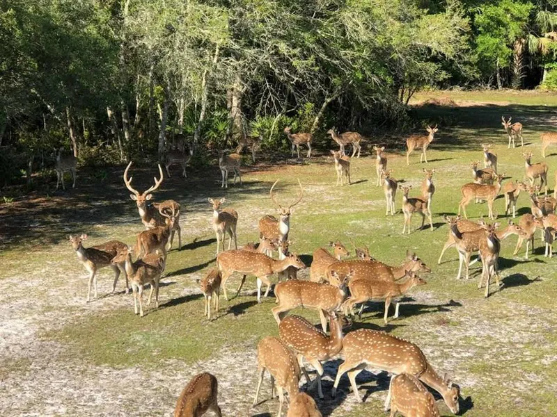 The amount of wildlife on this property is extensive, in fact inside the high fence too much so. Inside the high fence, it is estimated over 360 animals (150 axis does and 150 axis bucks, 10 follow deer, 4 fallow bucks, 20 whitetail does and 5 whitetail bucks, 5 red deer does, 3 red deer stags, 4 sika does, 2 sika bucks, 4 black buck antelope doe, 1 black buck antelope, and a zonkie). Theres something neat about having exotics that mature during different parts of the year, etc. and theres a lot to be said about seeing these animals on ones own property. Due to the way the habitat is shaped, the property can hunt well over a dozen people at once, making it ideal for corporate & family entertainment.