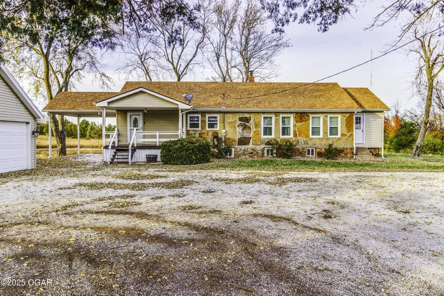 The perfect mix between accessibility and country living will be found at this 13 acre farmhouse! Come home to a park setting yard and patio overlooking the serene, stocked pond. The 3-bedroom, 2 full bath home is located between Webb City and Carthage, not far from 49 highway and the Oak Street exit. Recent updates to the kitchen and the primary bathroom have made it move-in ready. Also on the property is a 24 X 30 work shop with its own half bath! Basement and 2-car detached garage deserve an honorable mention. This home has the space, acreage, & functionality to make this a beautiful home for you and your family!