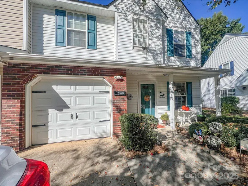 Main level living at its best in sought after Ballantyne. This spacious end-unit feels more like a single family home with additional light-filled windows! Featuring the primary bedroom with en-suite bath that is a true retreat complete with vaulted ceilings & walk-in closet, this open concept townhome includes a spacious kitchen, dining & living room with vaulted ceilings & fireplace. Laundry is also conveniently located on the first floor of this home. From the living room, step out to a sweet patio area complete with gazebo and privacy fence. This corner location is extra private with wooded views from the back of the property. 2 spacious bedrooms, a full bath & loft are located on the 2nd floor that is perfect for a home office or additional seating area. An attached one car garage completes the home. Current owner has done several updates & improvements including updating all bathrooms, adding LVP to the second floor and tile throughout the main level. Tyler Woods is a sought after community where you can enjoy the community pool and cabana in the summer months. Nearby you will find a variety of parks, shopping, dining & entertainment experiences.