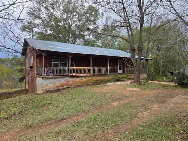 Country living at its best with this rustic ranch-style home sitting on 5.7 acres just minutes from town. This 2-bedroom, 1-bath home has that true country charm - wood siding, metal roof, and a full front porch made for relaxing. Inside you will find tall ceilings that open up the space and give it that cabin feel. The property offers plenty of room for animals, a garden, or just enjoying the peace and quiet. With its mixed privacy and convenience, this place gives you the best of both worlds - country comfort without being too far from everything you need.