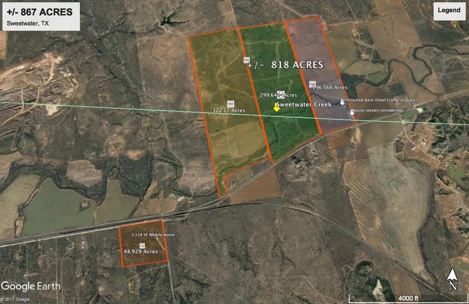 Live water from Sweetwater Creek, abundant wildlife, picturesque views and sunsets across the rugged West Texas landscape are nothing short of spectacular on this 867-acre partially high-fenced wildlife and cattle ranch. With its excellent location just 1 mile off of IH 20 and under 3 hours drive west of Ft. Worth and under 2 hours east of Midland, this ranch is an opportunity not to be missed. The ranch features over 120 of elevation change, varying terrain, interior roads, 11 tanks, 5 solar powered water wells, 5 hunting stations with tower blinds and feeders, fully fenced and cross fenced for cattle, and 240 acres of cultivated land. Included is a 1999 built Solitaire mobile home, hunting cabin, and metal-framed barn that also needs to be completed. The ranch is also served by Bittercreek Water Supply, CoServ Electric, and has several access points off of asphalt paved roads and county roads. Can easily be subdivided if desired. Call today or contact your agent to view this wonderful recreational and cattle ranch property.