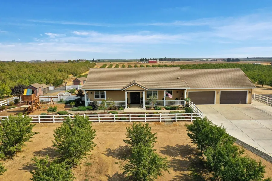 Incredible turn key 10 acre ranchette within Brookland Farms. This is one of the exclusive high end areas in the Central Valley. This Beautiful home has 3587sf, great room concept, 4 bedrooms, 3 full bathrooms, office, separate large living area with additional room and full bath off of mudroom and kitchen. The large kitchen is perfect for your entertaining cook. Large island and added bar stool peninsula, a ton of cabinets, and pantry. The kitchen and family room look out to the park like backyard that is also an entertainers dream. Side yard has large chicken coop and garden area. For the farmer in you, there is 8.5 acres of 6 year old Independence Almonds. New 40' X 60' shop with 16' wall and has two 14' roll up doors. Shop is also preplumped for a full bathroom. There is also a livestock corral with a 12x20 shade cover. Solar is owned. There is simply too much to list and is a must see!