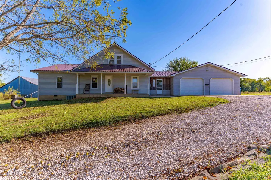 This beautiful home on 8.374 acres sits on the outskirts of Tell City and has beautiful country views! As you drive up to the home, you will see the pond and woods and then the view opens to the home. The large, covered front porch allows you to sit and look out over the peaceful countryside. Go through the front door and enter the spacious living room with a wood burning stove and windows overlooking the property. The primary bedroom sits off the living room and has a large walk in closet and en-suite bathroom with a stand up shower and whirlpool tub. Head into the eat in kitchen which has plenty cabinet space, a small breakfast bar, and a patio door that leads out to the back deck. The laundry/mud room is spacious and has room to drop your shoes and bags off as you come inside from the enclosed porch that is connected to the garage. Finishing off the inside of the home is another full bath, 2 bedrooms, and a room that can be used as a 4th bedroom or office, and a partial basement. The backyard is level and has great views too, which you can enjoy from the deck! With an an attached 2 car garage and 3 barns, this property has plenty of additional space and is about 12 minutes from I64. And, this home has fiber optic internet available!