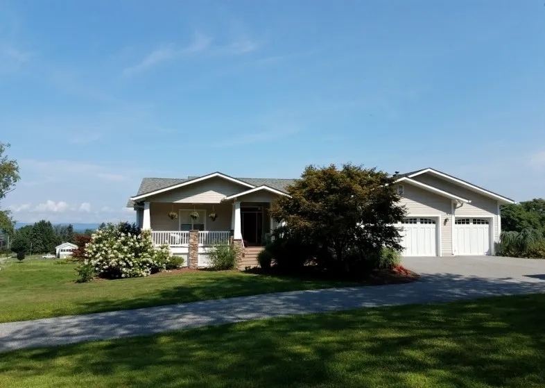 Custom design owner built home on 1.8 acre lot with expansive mountain views of Sussex County High Point Monument, near ski resort, dining, local shopping nearby, easy commute, close to highway. Shingle style vinyl exterior w/2x6 exterior wall framing to meet higher energy codes, Pella windows and doors with built in blinds, low maintenance wrap around deck perfect for outdoor entertaining, open concept living with Cherry kitchen cabinets, Kitchenaid SS appliances, 2 laundry rms, reclaimed Southern Pine flr, radiant heat throughout, indoor Endless pool w/sauna, area for exercise equipment with its own full size bathroom. Guest space on lower level. Oversized heated detached garage perfect for car enthusiast, outdoor hobbyist, or contractor with its own separate entrance/office/storage, 1/2 bath.