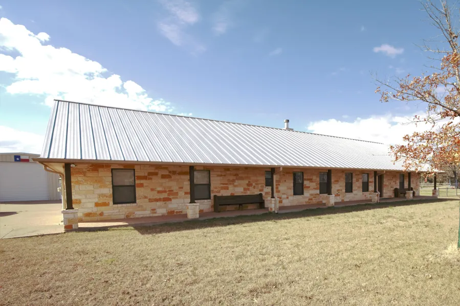 Dreams really do come true! The mixed limestone, cedar posts & metal roof have been precisely designed to replicated a Texas Hill Country theme. This is located on a quiet acre in Tejas Ranch where the kids play in the street, the neighbors are friendly and the air is fresh! It is evident that this home has been loved and very gently used since 2012 and just waiting for you to come home! The interior includes granite counter tops, black appliances, custom cabinets, raised ceilings with crown molding, floor to ceiling mixed limestone fireplace with hearth, custom built mantel, wood laminate and tile flooring (no carpet!) just to mention a few of the features. The utility room is huge and has a wall of cabinets and granite counters that is almost 14 feet long! There is even a separate mud room. This split bedroom plan has limited halls so there is no wasted space. You won't believe all of the extra storage in this home! The two-car garage with separated garage doors & openers is over sized and has an epoxy painted floor. To complete the package, there is a 30x50 metal building on a slab (1500 Sq Ft). There is plumbing stubbed out in the back of this building just in case you want to add a bathroom. Finish out part of the building with an office, quarters, hobby room or leave it as it is & use for exactly what you need! You decide! The overhead door on this building is large enough to park your RV inside! Wow! Make your appointment today!