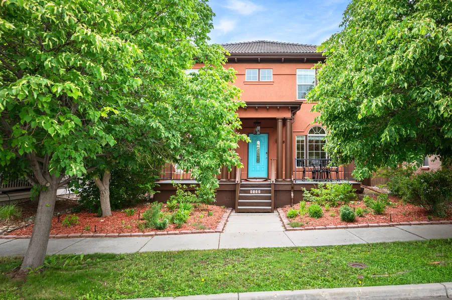 Located in the Central Park neighborhood of Denver, this artsy single-family home blends comfort with style. The front dining room is perfect for entertaining, while the office, framed by French doors, provides a private, flexible area ideal for work or creative pursuits. The kitchen features a custom-made island and backsplash tile with subtle Mediterranean influences. A walk-in pantry adds storage and convenience, while the adjacent living room—with its sleek fireplace and custom built-in wine rack—offers a warm, inviting space to relax or entertain. A dedicated laundry room with a utility sink and storage enhances the home’s functionality. Upstairs, the primary bedroom offers a serene retreat featuring a newly remodeled, spa-inspired bathroom with a freestanding soaking tub, walk-in shower, double vanity and artisan tile floor. A spacious custom walk-in closet provides generous storage, complemented by a hallway linen closet. Additionally, you’ll find two nice-sized bedrooms, each with ceiling fans, and a full bathroom conveniently located in between. The recently finished basement extends the home’s versatility, featuring a family room, gym, additional bedroom, and a full bathroom—ideal for guests or personal retreat. Outside, enjoy a charming yard with a pergola, built-in gas line for grilling and sprinkler system. A spacious front porch invites relaxed mornings or friendly conversations with neighbors. Crown molding throughout adds a refined finish, elevating the home's elegant yet artistic character. This home has many upgrades, including a new furnace and air conditioning system. Additional features like radon mitigation and a two-car garage with overhead storage add everyday ease.
