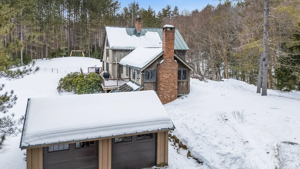 Yankee Barn home privately situated on 7 acres in Olde Farms with 4 bedrooms and 4 baths. Look out over a sloping lot to the woods beyond from a spacious wrap-around deck. Marvel at the 3-story great room with a floor-to-ceiling brick fireplace, gleaming pine wood floors, and a window display all the way up to the cathedral ceiling. Natural woodwork and solid wood doors throughout give this home a warm and welcoming aesthetic. Entertain from the open, updated kitchen with quartz countertops, a breakfast bar and newer stainless steel appliances. Take your pick of two first-floor bedroom suites, both with Jacuzzi tubs and one with its own fireplace. The lower level walkout family room features a brick hearth, kitchenette, half bath and sun space with skylights. Great for indoor plants! On the 2nd floor, you'll find a loft area with built-ins, the 3rd and 4th bedrooms, and another full bath. If that s not enough space, climb the traditional staircase to the 3rd floor to find yet another room with skylights that could be used for hobbies, a play room, an office, etc. Complete with a 1-car garage under and a 2-car detached garage. Other amenities include a Buderus heating system, Rinnai tankless water heater, newer standing seam roof, AC mini splits, 2 separate septic systems and an automatic standby whole-house generator. Come enjoy the rural setting and close community you ll find in Grantham, NH. In the heart of the Dartmouth - Lake Sunapee Region, only 20 minutes from DHMC.
