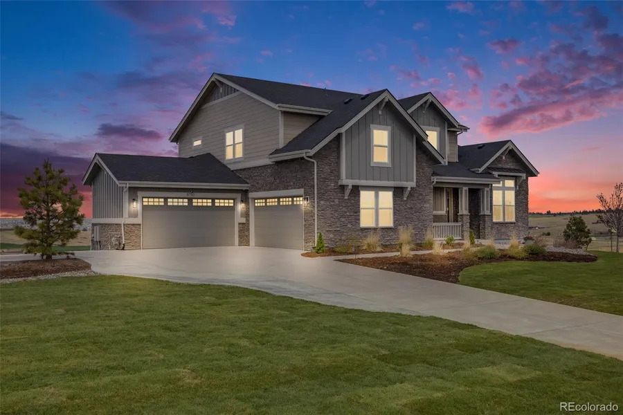 Did someone say MOUNTAIN VIEWS!? Welcome to your dream retreat in the prestigious community of Two Bridges in Franktown-where luxury living meets the Colorado lifestyle. Perfectly positioned just minutes from Parker, scenic trails, the renowned equestrian center, and the charming heart of Franktown, this five-bedroom, four-bath masterpiece offers an exceptional blend of space, comfort, and natural beauty. Situated on 4.65 pristine acres and backing to unobstructed open space, this private estate invites you to breathe in expansive mountain views from nearly every corner of the home-including the kitchen, dining, living room, primary suite, luxurious primary bath, upstairs secondary bathroom, and even the lower-level bedrooms. With a seamless open-concept design, soaring vaulted ceilings, and panoramic windows, the main level is flooded with natural light and built for entertaining. The chef's kitchen flows effortlessly into the dining and living spaces, making it the heart of the home. A thoughtfully designed bonus room and a state-of-the-art theater room provide flexibility for both relaxation and recreation. Step outside to your personal paradise-complete with a sparkling pool, fenced backyard, and a dedicated dog run for your four-legged family members. Whether you're sipping your morning coffee or hosting summer soires, the serene backdrop of mountain vistas and the tranquil privacy of your fully fenced acreage provide the perfect setting. Meticulously maintained and beautifully updated, this home offers the ultimate in elevated living, where every day feels like a getaway. Prior Model Home.
