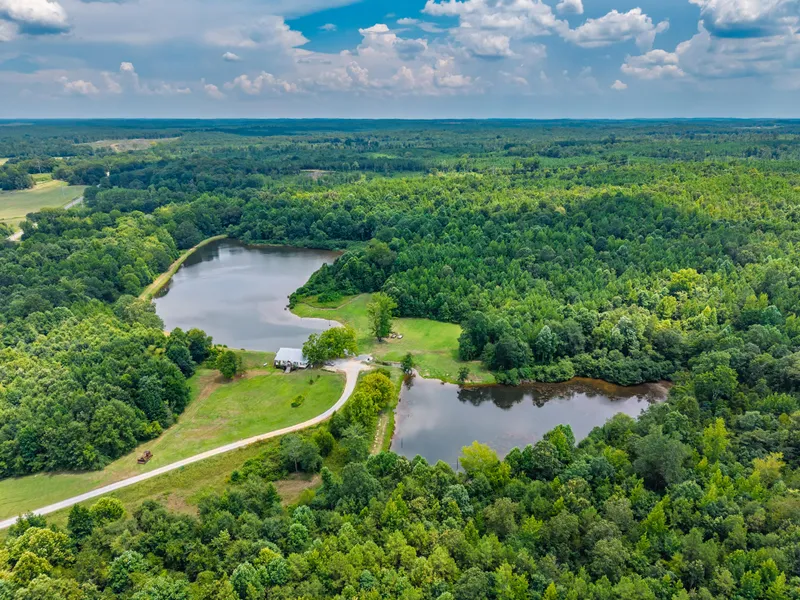 Welcome to the Water Valley 110! Approximately 110 acres featuring a 6-acre lake and another 1.5-acre lake. Both lakes are spring-fed and maintain consistent water levels year-round, offering fantastic fishing and swimming. The timberland consists of mixed pines and hardwoods, providing excellent deer and turkey habitat. There are nice open land areas around the lake and house, with several additional home sites on the property. The home is 2,026 sq ft with 4 beds and 3 full baths, featuring a large deck and pier overlooking the lake. The property also includes an outdoor shower on the deck.