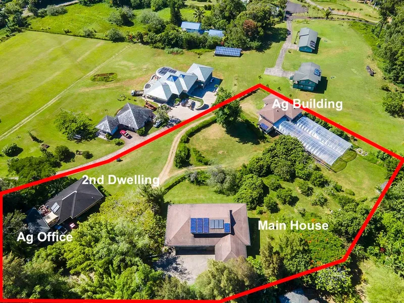 Experience the much desired Haiku lifestyle from this charming open concept home on 2 lush acres with a great Ag Business set up. This property has the option of being an income-producing agricultural property and has so much potential! This sprawling 2-acre lot has mature fruit-bearing trees, manicured grounds, privacy, and a concrete driveway. The home features wrap-around lanais with lots of natural sunlight and ocean views. Powered with photovoltaic energy panels and still on the Maui Electric grid. In addition to the 2,879 sft main house, this property is complete with a 800 sft 2 bedroom 1 bath 2nd farm cottage, a 420 sft Ag Office and a 1,152 sft Ag Building with extra high garage parking for large vehicles, plus a 4,000 sft greenhouse! The Ag Building and greenhouse are the perfect set up for an Ag business. Think flowers, vegetables, or even the possibility of an associated Ag kitchen for canning or processing food grown on the property. Kamali'i Place is just off Hana highway and is an ideal Haiku location. Close to Haiku Town, The Cannery, Nukas, Hookipa, Mama's, Paia, Baldwin, and Baby beach!