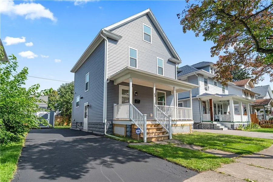 This is a rare and one-time opportunity being offered by the Rochester Land Bank Corporation-a fully renovated home available exclusively for owner occupancy. Unlike any other sale, offers with the required supporting documents will be reviewed, and all qualified buyers will be entered into a drawing where one offer will be randomly selected. Offers and the required supporting documents must be submitted by October 13th. The Rochester Land Bank Corporation will select two additional offers as backup in the event the winning offer does not complete the sale. Built in 1920 and completely transformed from top to bottom, this 1,428 square foot colonial feels like a brand-new home. The square footage reflected on the city of Rochester Website is 1428 and based on a recent appraisal. The renovation includes a tear-off roof, all new windows, high-efficiency furnace, central air conditioning, updated electric service and panel box, new waterline from the street to the house, and a new water tank. The kitchen features new cabinetry and luxury vinyl plank flooring flows seamlessly throughout. The home offers a formal dining room, two full bathrooms, a convenient first-floor bedroom with a full bath, three additional bedrooms upstairs, and a versatile fourth room on the second floor that could serve as a 5th bedroom, home office, or studio. The basement has been professionally waterproofed and includes glass block windows for both efficiency and security. Outside, the private backyard is complemented by a brand-new shed for added storage, and an inviting open front porch provides the perfect place to relax and enjoy the neighborhood. This is not just a house-it is a like-new home, move-in ready and waiting for its next owner occupant. Don't miss this unique chance to purchase a fully renovated property through this special one-time sale.