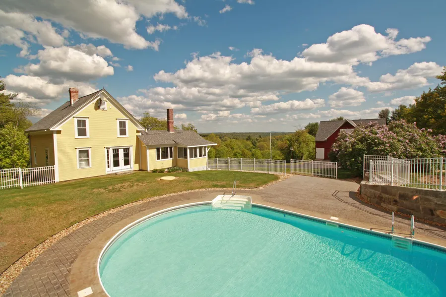 Charming & Picturesque. Over 13-acres located on a quiet country road within walking distance to the historic village of Fitzwilliam, which is known for its Antique Shops. This property summons those who enjoy outside space. Nooks & crannies of fields, stonewalls, gardens, trails in the woods, tree fort, sheds, amazing pool & patio area & serene distant VIEWS. Includes .48 acres across street to protect your privacy. The stonework around the pool, pool house & patio area is extraordinary. The large & rugged multi-level, multi-functional antique barn shows a hint of a past that once had cows. Today, it lends itself to many uses including workshop, garage bays for vehicles, extra storage space, plus room for animals (from chickens to horses). The lower level is open and could easily accommodate stalls. The 1 1/2 story 3BR/2BA Cape Farmhouse offers an enclosed front porch, living room with wall of windows that brings the outdoors in and a family room w/french doors to back patio. The rooms flow from one to another, great for entertaining and the wood stove keeps the home toasty warm.