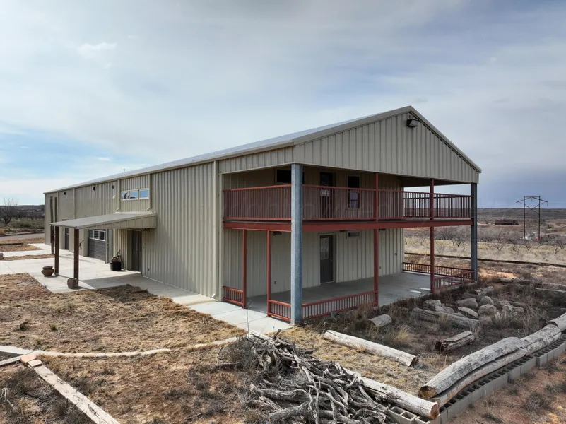 Welcome to a Barndominium Beauty with Unmatched Views! Perched on a high ridge in Tascosa Hills! This rare find sits on 9+ acres with a historic quarry, offering endless possibilitiesincluding commercial potential. Built to Gulf Coast hurricane standards, this all-electric home is fully foam insulated with a 5'' concrete slab for lasting durability. The sprawling garage boasts three doors and space for a Class A motorhome. Your living needs will be met with wonderful kitchen, 2 Bedrooms and bath with large shower. Powder bath for guest. Very large loft for group activity or another bedroom. Enjoy breathtaking views from expansive upper and lower covered porches. Don't miss this one-of-a-kind property! Hike up hill and sit on benchthe perfect spot to soak in Amarillo's stunning sunset.