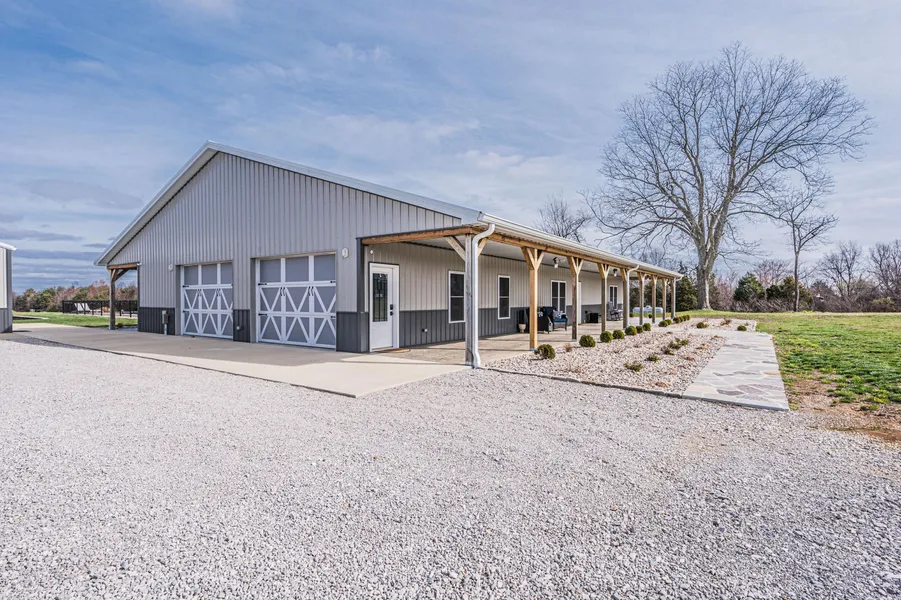 - Custom built 3 bed, 2.5 bath barndominium style home built in 2019 with attached garage, detached garage and large workshop