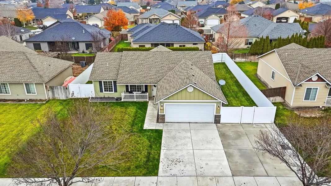 MLS 288933 Incredibly well-cared-for single-level home in the heart of Grandridge Meadows South! This beautifully maintained 1,344 SF rambler features a bright, open layout with a seamless flow between the kitchen, dining and living areas—perfect for everyday living and entertaining. The kitchen offers a convenient island for prep or seating and the sought-after split-bedroom design provides added privacy for the primary suite. Step outside to enjoy both covered front and back patios, ideal for year-round relaxation. The fully fenced side and backyard offer space for pets, play or gardening and include a UGS timed sprinkler system for easy upkeep. Additional highlights include washer and dryer, exterior painted in 2022, a spacious 2-car garage with an oversized driveway and extra parking, plus an HVAC system equipped with a humidifier for enhanced comfort throughout the seasons. Tucked away just off Steptoe in the desirable Grandridge Meadows South neighborhood, this home delivers convenience, comfort and pride of ownership in one inviting package. Call your favorite Realtor today for a private showing.