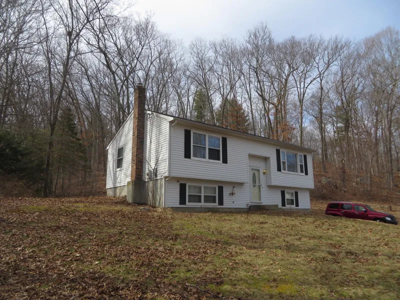 NO DOWN PAYMENT NEEDED FOR US Dept of Agriculture 100% financing or VA mortgages. Affordable raised ranch set on 2 acres abutting Natchaug State Forest, sets up overlooking the Natchaug River Valley, finished lower level has in law apartment potential with space for 2nd bath directly below upstairs bath, oil heat, wood floors, private backyard deck, shed, a great location for those who love outdoor recreation, hunting, fishing, swimming nearby with thousands of acres of State Forest, the Natchaug River is a couple of hundred yards away, quad trail goes up the hill to level plateau in the back located on scenic RT 198, zoning allows farm stand sales of farm products, home baked goods, etc, in home professional offices, major shopping like Home Depot, Super WalMart & national restaurant chains is 9 minutes away (per mapquest), UCONN 19 minutes, Main St Hartford 43 min, Providence 59 minutes. The State Forest land abutting this home runs contiguous to the shores of Halls Pond (82 acre State Bass Management Lake with 6 homes total on it).