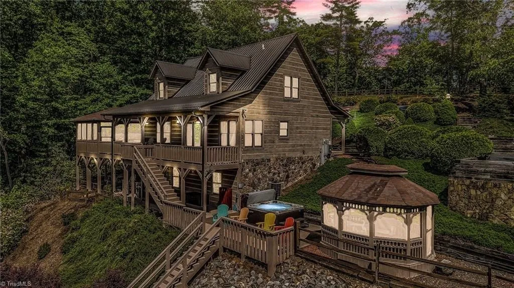 Where the Mountains Kiss the Sky - Luxurious Mountain Cabin on 6.5+ acres w/ long-range majestic views and a 4-stall barn in Leatherwood Mountains Resort. Discover “HAPPY TRAILS,” this exceptional property is ideal as a second home, full-time residence, or premium investment for vacation-short or long-term rental . This custom-crafted cabin comes fully furnished & offers 2 spacious, separate living quarters—perfect for extended family or guests. Highlights include: 3 large BR suites, (2BR septic) 3 full baths, 2 kitchens, 2 great rooms, 2 fireplaces (one stone), and a spa-inspired bath on the upper level. Enjoy expansive decks & covered porches with breathtaking views—ideal for unwinding or soaking in the hot tub. The 4-stall barn includes a tack room, feed storage, and paddock w/ fenced pasture. An additional 3.76-acre fenced pasture w/water & electricity sits across the road & could serve as a future building site. Storage building, 30 amp RV hookup, & generator connection in place.