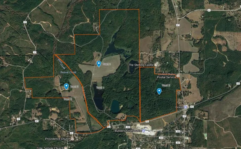This tract of about 885 acres is located only minutes from the Calera Exit on I-65 South of Birmingham. The tract is located adjacent to the town of Shelby, a few miles from the Shelby County seat in Columbiana.