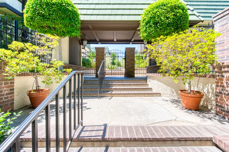 This European inspired complex is perched on a grassy knoll high above Orange Grove Boulevard. Meticulously maintained, this top floor unit is located in the only gated community on Millionaires Row. Tucked inside this pretty and flower filled complex, you'll enjoy strolling to your seemingly private unit. Light from three sides and multiple skylights draws in wonderful natural light. The complex has been designed by the noted architect Bob Ray Offenhauser and one can see that from the open and spacious single story living floorpan. This fabulous unit is equipped with an elevator which can take you from your attached 2 car garage to your upstairs living quarters. The chefs kitchen has new stainless steel appliances, including a double oven, fridge, stove top and trash compactor. Two of the large sized bedrooms are en suite. A fireplace adorns the spacious living room which has one of the two large balconies attached for indoor outdoor entertaining. Great location close to old town Pasadena, Rose Bowl, and easy access to the 110 fwy to get to Downtown Los Angeles.