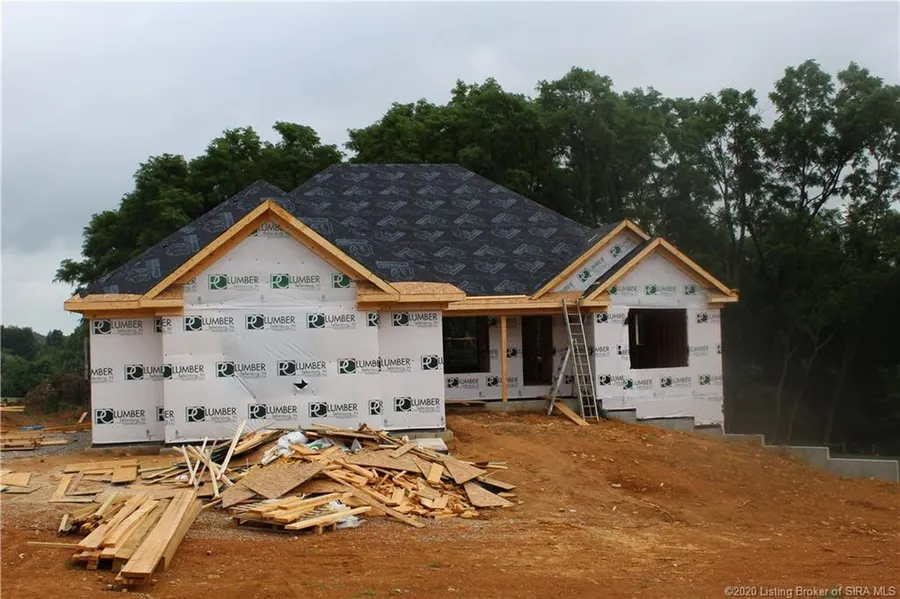 The AMBROSE. One of Discovery Builders Top Selling Plans. This 4 Bed, 3 Bath Walkout Ranch Style Home is situated on over 2 Acres in Highland Lake Estates Community in Award Winning Floyd Central High School District. This Quality Built Discovery Builders Home is from Discovery's ESTATE COLLECTION and offers over 2,000 SF on the Main Level with another 1,000 SF in the Professionally Finished Lower Level with 9' Foundation Walls. The Lower Level is a Full Rear Walkout Basement and there's a Tree Line that provides Great Privacy, including the Spacious Covered Deck and the Lower Level Patio. Come See WHY SO MANY BUYERS ARE CHOOSING DISCOVERY BUILDERS. As you enter this home from the Covered Front Porch you're immediately welcomed into the 10' Foyer which opens to the Great Room, Kitchen and Large Dining Area - All Open, Light and Airy with 10' Ceilings, Detailed Crown Molding and Transom Windows. The Owners Suite includes a Nice Size Bedroom and Outstanding Custom Tile Shower for (2) with Bench Seating and Frameless Glass Door. There's also a Double Vanity Sink, Commode Closet and Large Walk-in Closet. This Split Bedroom Home offers (3) additional Bedrooms, none of them smaller than 12' x 12'. There's also an Oversized Side Entry 2-Car Garage and Bench with Cubbies as you enter from the Garage. There's also a Large Laundry Room with Privacy Door. The Lower Level is great for Entertaining Guests. Call Today to View this Home as All Discovery Builders Homes are Selling Fast!