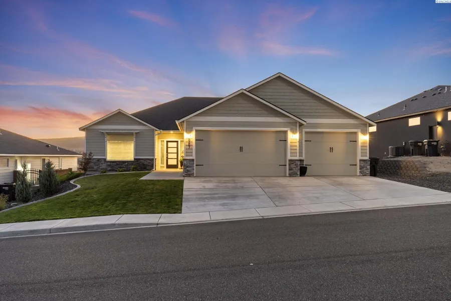 MLS# 288104 Welcome to this stunning 2022-built daylight basement home offering over 3,500 sqft of like-new living space, thoughtfully designed for multi-generational living or rental income potential. Located in the highly desirable city of West Richland, this 5-bedroom, 4-bathroom home is a rare find—featuring dual primary suites, each with its own laundry area, kitchen space, and private entrance for truly independent living on both levels. The main level boasts an open-concept layout with a beautifully appointed kitchen featuring quartz countertops, soft-close cabinetry, stainless-steel appliances, a natural gas range/oven, and a walk-in pantry. The inviting great room is anchored by a floor-to-ceiling rock-surround gas fireplace with custom built-in shelving, perfect for cozy evenings or entertaining guests. The main-floor primary suite features a luxurious ensuite with a fully tiled walk-in shower and generous closet space. Downstairs, the daylight basement offers an exceptional layout with its own kitchenette, full bathroom, laundry room, and second primary suite, plus a dedicated home theatre room—ideal for family movie nights or as a premium rental feature. With private exterior access, the lower level offers true independence for guests, extended family, or tenants. Additional highlights include: Full-length composite deck offering sweeping, unobstructed views of the Columbia Basin, Red Mountain, Rattlesnake Mountain, and breathtaking year-round sunsets. Abundant storage throughout. Custom blinds, fully landscaped yard, and appliances already installed. Located just minutes from top-rated Desert Sky Elementary School, parks, shopping, and other local amenities. With high-quality finishes throughout and a versatile floor plan, this home truly checks all the boxes for comfort, flexibility, and modern living. Don’t miss your chance to own this incredible property—schedule your private tour today before it’s gone!