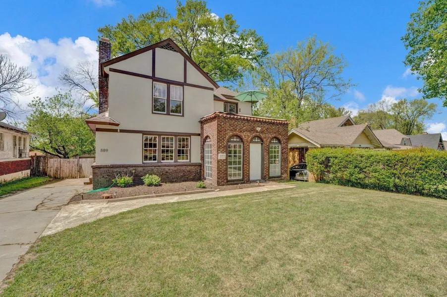 This Vollintine-Evergreen home with 4 beds and 1 1/2 baths has a unique blend of architectural styles that makes it charming and distinctive. The downstairs bedroom could be flex space/office. From the brick, enclosed front porch/entry (14'x10') with brick floor, it features new and restored hardwood floors, fresh interior paint, and individual features that give it character: arched doorways, wall niches, large windows, and upstairs balcony add to this sunlit beauty's unique character. Kitchen opens to a large den area. Details include French doors, built-ins, separate laundry room. There are permanent attic stairs. 2018 HVAC, 2018 roof. Stainless fridge and washer/dryer stay but are not warranted. Multi-level deck in the backyard is perfect for morning coffee or dinner with the sunset. Close to Rhodes College, Overton Park, The Memphis Zoo, the St. Jude complex, and the downtown Memphis area. Located around the corner from Memphis' oldest Blues Bar.