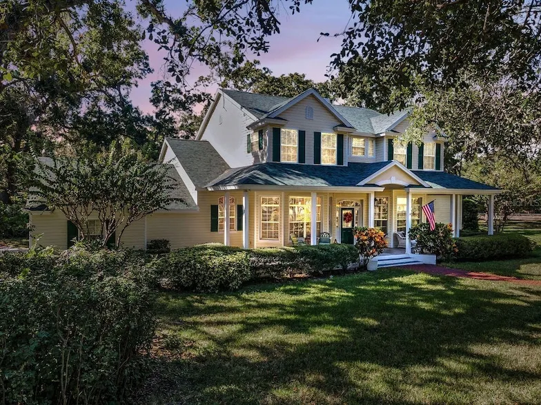 3 ACRES! Nestled in the heart of Pinellas Park's equestrian community, this stunning home sits on 3 acres, offers 4 bedrooms, 2.5 bathrooms, with ample living space and numerous amenities. The generously sized primary suite features an impressive double-sided stone fireplace that connects to the living room. The primary suite includes an adjacent bedroom which would work well as a home office, home gym, or potential nursery. The home boasts a large loft area, perfect for a home office, hobby room, or additional living space. The 2 upstairs bedrooms share a Jack & Jill bathroom, providing convenient access and privacy. A bonus room offers additional storage space. The kitchen features window seats that offer even more storage space. The living room showcases custom built-in shelving, adding both style and functionality. The home is equipped with double-pane windows, an HVAC system that is 3 years old, and a roof that is 2 months old, ensuring energy efficiency and comfort. The covered front and rear porches invite you to relax and enjoy the outdoor environment. The 3-car garage provides ample storage and parking. The gated property is completely fenced, with a large outdoor firepit and covered RV parking that includes a 50-amp hookup. A detached garage, with 3 electric roll-up doors, provides additional storage and workspace options. The small shed near the rear garage is climate-controlled, making it suitable for use as a kennel or chicken coop, complete with its own fenced area. The property is zoned for horses, close to riding trails, and has potential for expansion with zoning for a guest home. The long circular driveway provides ample parking and easy access to the home. Don't miss out on the opportunity to makes this stunning home yours!
