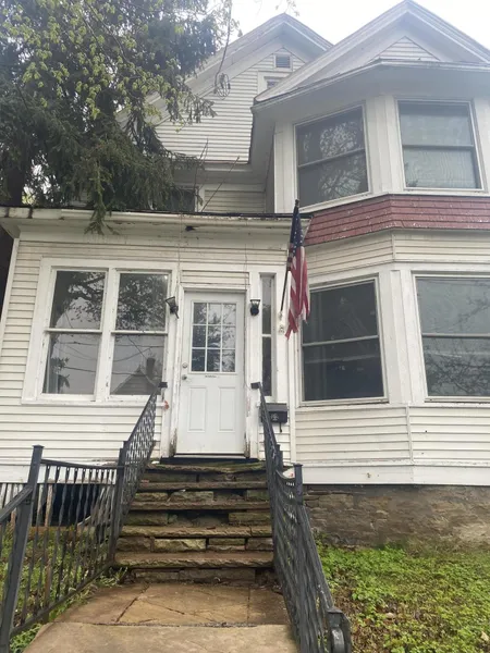 New Reduced Price, you do no want to miss out on this deal. Welcome to a unique property full of charm, space, and opportunity! Whether you're looking for a starter home to make the way you want it or a smart investment with rental potential, this versatile residence is ready to meet your needs. Step inside to a spacious living room and den area-perfect for entertaining, creating a bigger office with the one attached, or even converting into additional bedrooms or recreational space. The home boasts not one, but two enclosed porches-front and back-both filled with natural light and ideal for year-round relaxation. The backyard is a true gem, especially for the village area. You'll love the generous green space, fully fenced for privacy, making it great for entertaining, pets, or quiet outdoor enjoyment. Along with a two car garage and driveway on the side of the house. Upstairs, the possibilities continue. Two cozy bedrooms greet you as you reach the top of the stairs with a little nook area, and beyond them down the hall lies a large, open space that once functioned as part of a duplex. This expansive area could easily be reimagined as a primary suite, studio, or additional living quarters. From here, step out onto the covered upper porch and take in views of your private backyard retreat. This property is perfect for a growing family, someone with a creative vision, or an investor looking for rental income opportunities. Don't miss your chance to unlock its full potential!