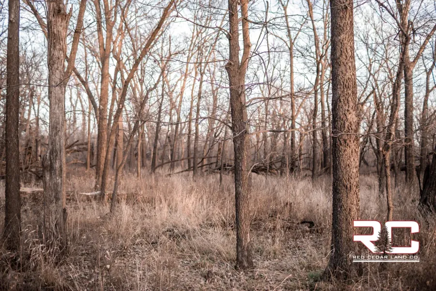 Mature Timber: Features Cottonwood, Elm, Locust, and Cedar trees, providing exceptional cover and habitat for deer, turkeys, and other wildlife.