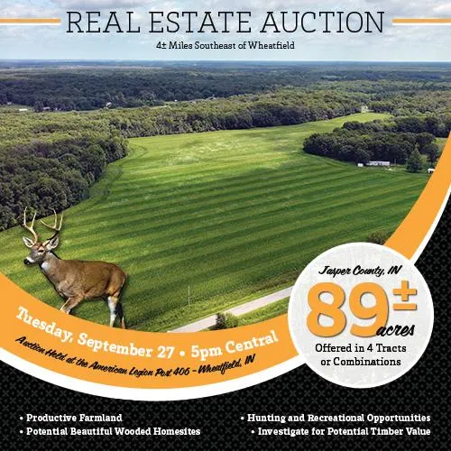 4+/- Miles Southeast of Wheatfield Productive Farmland Potential Beautiful Wooded Homesites Hunting and Recreational Opportunities Investigate for Potential Timber Value