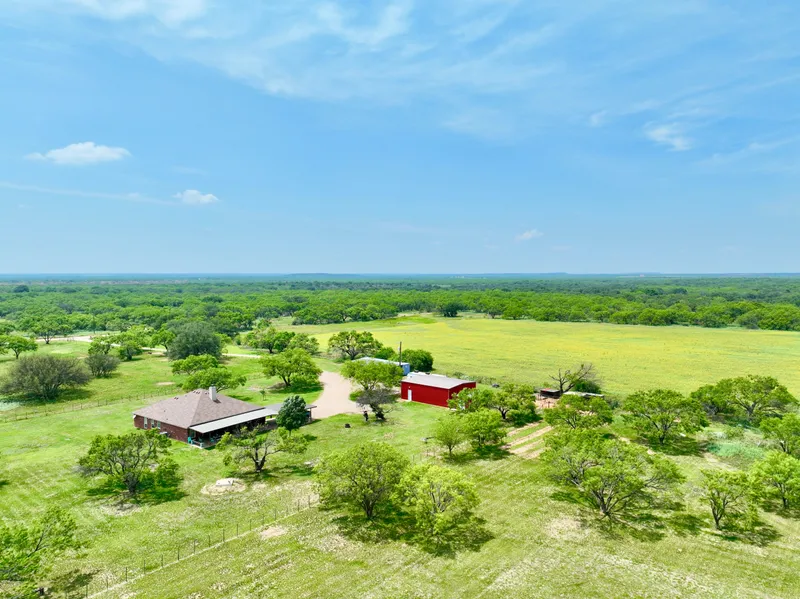 This beautiful ranch is located an easy 1.5-hour drive west of DFW, offering a peaceful setting away from the hustle and bustle of the city. Built in 2009, the spacious home boasts three generously sized bedrooms and two full baths, with two living areas, providing comfortable accommodation for large families or those who like to entertain. You can relax and take in the beautiful surroundings on the oversized covered porch, allowing you to enjoy stunning sunrises and the shade of mature oak trees.