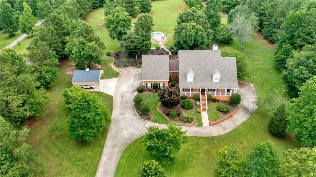 Exquisite 5.2- acre estate with golf course view in Winston, GA. This all-brick home with a rocking chair on the porch is inviting from the moment you drive up to the gate- step in the front door to see the two-story foyer and living room with a fireplace. The private office is masculine with rich wood paneling. There is a 12- seat dining room, a spacious kitchen with stainless appliances, quartz countertops, a pantry, a laundry room, and a mudroom. The prominent owner's suite opens onto the front porch, and the owner's bathroom hosts an oversized shower and double vanity. Upstairs is a second main bedroom with an ensuite, the guest's bedroom, and an additional bath. Enjoy the peaceful outdoor screen porch, fireplace, and pergola. The backyard also has a gunite saltwater pool, three waterfalls, and a sun shelf. The pool area includes a cabana and bath house. The estate is entirely fenced- all of this is an easy commute to Atlanta.