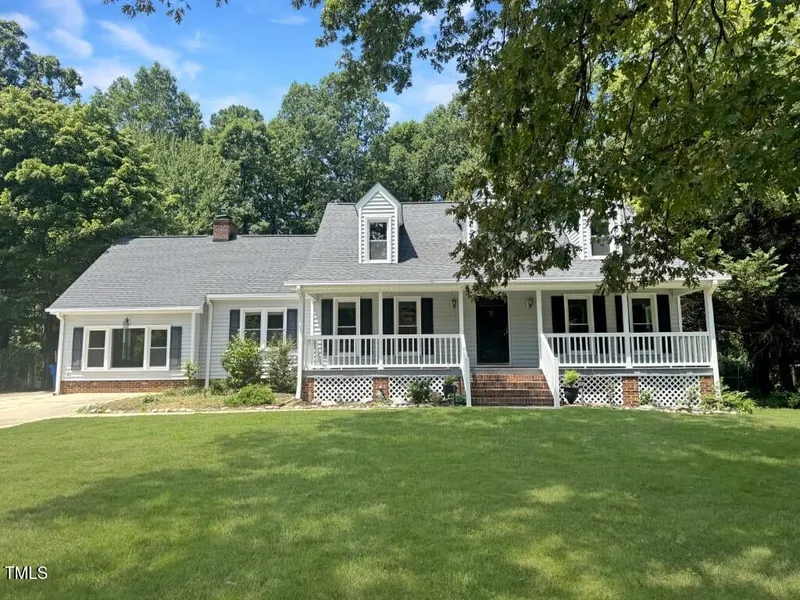 Tucked away on a sprawling 0.75-acre wooded lot in a prime North Raleigh location just minutes from I-540, this spacious home offers both privacy and convenience! The versatile floor plan features a first-floor guest or in-law suite, ideal for multigenerational living or visitors. Enjoy natural light year-round in the huge sunroom, complete with a vaulted ceiling, tile flooring, arched transoms, and double French doors that open to a large deck and patio overlooking the serene, private backyard. The kitchen features painted cabinets, granite countertops, tile floors, a stainless double sink with a window view, and a breakfast nook with a triple bay window. A separate dining room with hardwood floors provides the perfect space for formal meals and gatherings. Upstairs, the expansive primary suite includes a walk-in closet and a private bath with a walk-in shower. The cozy family room offers a fireplace, built-in shelving, and French sliding doors leading to the sunroom. Plenty of storage throughout, plus two exterior storage shed for added convenience. Don't miss your chance to own this beautiful North Raleigh retreat—schedule your showing today and experience all it has to offer!
