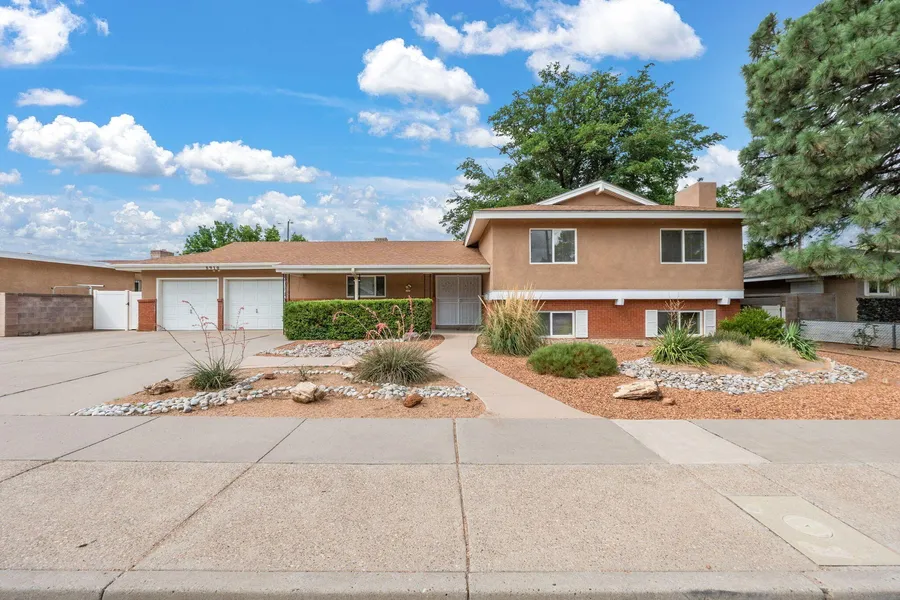 WELL MAINTAINED, Tri- level, 3 up,1 down. Features a formal dining/living area, 15X26 game room/ den w/fireplace, new flooring, down. Light & bright great room AKA Sunroom, with vaulted ceilings, gas/log FP, skylights, overlooking a GARDENER'S DREAM backyard with blooming flowers from Spring until Fall, mature landscaping with a peach tree, daffodils, roses, and tulips, covered patio and much more. Long galley kitchen with abundant oak cabinets, pull outs, island, new appliances, office nook. RV PARKING! The oversized garage provides space for workshop. Roof(8years), 2 evap. units (13years), water heater (4 years) Stucco (3 years), fresh paint in rooms and trim. INSPECTION completed, repairs done! Sandia High School, close to Bellehaven Elementary. Don't miss out!