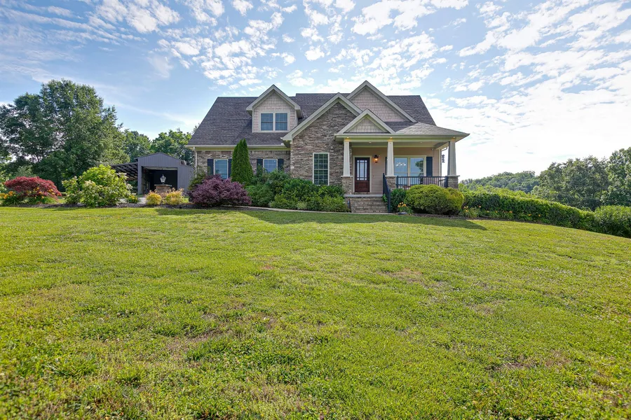 10 acres of unrestricted beauty! This 3 BR 3 full BA beautiful custom built home with over 3,500 sq ft of living space has everything you want for fine country living! Master is on main level, open concept in kitchen/family room, spray foam insulation, finished walk-out basement, storm room, workout room, bar, office, barn, shed, already fenced for your fav farm animals. Picturesque views in winter of Buffalo River below. wildlife all around. Additional build sites on property.