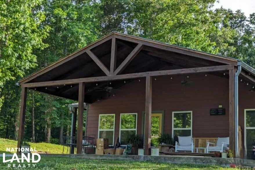 Nestled amidst the serene wilderness of Hickman County, Tennessee, this exceptional 2284 sq ft cabin offers a unique blend of luxury living and outdoor adventure. Boasting a Hardie Board exterior, this cabin stands as a testament to quality craftsmanship and enduring beauty. Set against the backdrop of 57 acres of pristine land, this property is a paradise for outdoor enthusiasts, particularly those drawn to the thrill of deer hunting. With ample deer habitat and abundant wildlife, including whitetail deer, this property offers unparalleled opportunities for hunting enthusiasts to indulge in their passion while surrounded by the breathtaking beauty of nature. Step inside, and you'll discover a spacious interior designed for comfort and relaxation. The cabin features two bedrooms and two bathrooms, providing ample space for both residents and guests. The open-concept living, dining, and kitchen area creates a welcoming atmosphere for gatherings and entertaining. The gourmet kitchen is a chef's dream, featuring an 8 ft island, a 48" gas range with a double oven and custom vent hood, and a walk-in pantry for storing supplies and provisions. Additional highlights include a sunroom with a mini-split system for personalized climate control, perfect for unwinding after a day of outdoor adventures. On the opposite end of the cabin, an extra living room or man cave awaits, complete with the potential for a wet bar and refrigerator hookup, ideal for hosting gatherings or simply relaxing in comfort. Outdoor living is equally enticing, with a 20x16 covered deck off the back of the cabin providing a peaceful retreat to enjoy the sights and sounds of nature. A 30x16 covered patio on the East end overlooks a tranquil pond, offering a picturesque setting for outdoor dining or simply soaking in the serene ambiance. A small covered front porch and a portico over the West end door add to the charm and appeal of the outdoor spaces. For those with hobbies or storage needs, a 40x50 shop with three 12 ft lean-to's provides ample space and versatility. With concrete floors in two of the lean-to's and convenient access via walk-in and garage doors, the shop is well-equipped to accommodate a variety of needs and activities. And let's not forget the natural beauty that surrounds the property, including 600 ft of creek frontage along Tatum Creek on the North West side. Whether you're fishing, hiking, or simply enjoying the peaceful sounds of the water, this creek frontage adds an extra layer of tranquility to the property's already serene setting.