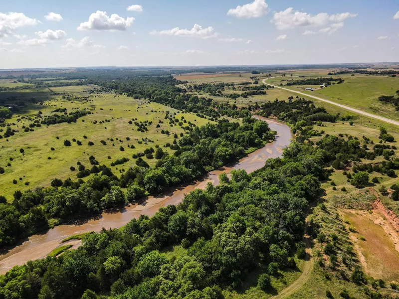- Both Elm Creek and Medicine River bottoms with excellent habitat merge on this property