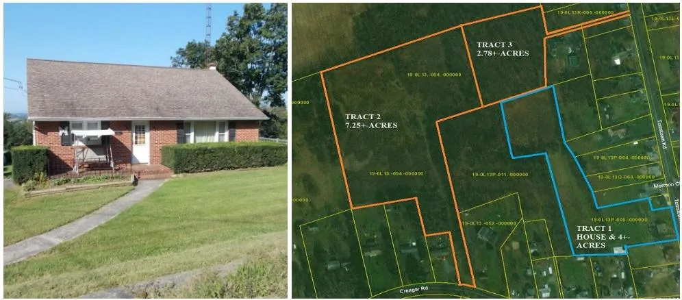 YOUR PROPERTY IN THE COUNTRY AWAITS! 4+-ACRES W/BRICK HOME & AMAZING VIEWS OF THE CUMBERLAND VALLEY! Brick home w/3 BR, 1 Bath, LR, Eat-in Kitchen, partially finished Basement & 1-Car Garage situated on 4+- Beautiful Acres w/several outbuildings & older stable! Ideal for horses or other livestock. Public water & sewer