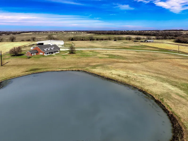 This fabulous 9 ac property offers 4 Bedrooms and an office with heat and air in one bay of garage. 4000 sf Insulated Shop space, with 220V power. Two 14x14 roll up bay doors with walk thru doors on each end. Office or living quarters with bathroom and shower. Attached on the barn side is 2400 sf 30x80 with a 16 ft isle. Two 12x12 bay doors and 10x12 side rollup for pasture access. Two 12x14 stalls and one 24x14 foaling stall. Insulated tack room, wash bay with tie-downs. 20x30 hay storage on the opposite side with one 10x12 rollup and walkthru door. The engineered foundation is 8in post tension with approx 27 piers, plenty of strength to hold large equipment. This is a very flexible property!