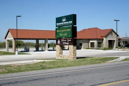 ANCHOR TENANTS: Weatherford National Bank, Brock branch centerpieces the development with a stone exterior, metal roof, drive through depository and landscaping.