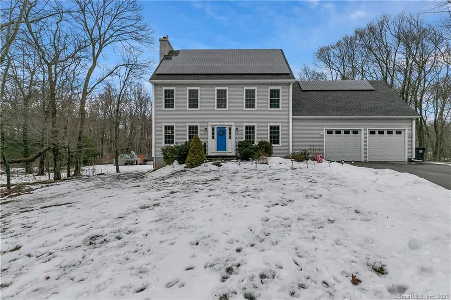 Spacious and impeccable colonial home on a cul-de-sac with 4 B/R, 3 1/2 BA with $75,000 worth of upgrades which include new roof, and new solar system PAID OFF. A chef's delight in this generously sized Eat in kitchen, new stainless appliances, granite counters and so much more. Large deck to backyard. Gleaming hardwood floors on main level, formal dining room and and new remote controlled propane Enviro gas fireplace in living room. Central Air. On the second level, you will find the Master bedroom with walk-in closet, ensuite bathroom with jetted tub. Three additional bedrooms, spacious laundry room, linen closet and additional storage closet. Finished walkout basement with dry bar and full bath overlooking the spacious yard and above ground pool with new liner. Oversized heated 2 car garage. This lovely home sits on a 1+ Acre lot. This is the forever home you've been waiting for.