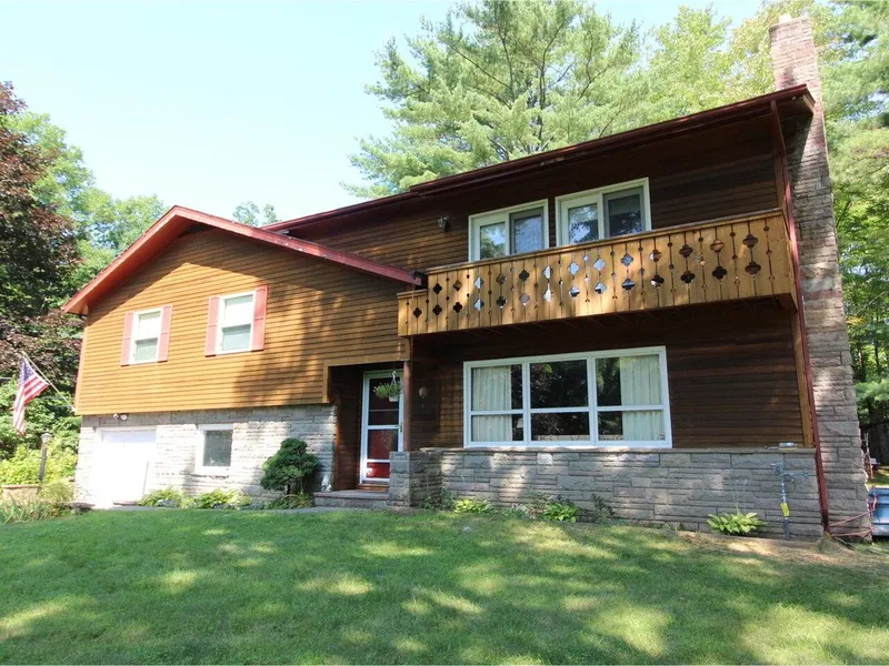 Don't overlook this charming multi-level home on a 3.63 acre corner lot with subdivision potential and Southern exposure. Offering gorgeous Brazilian cherry floors, woodstove in the living room, family room, laundry/mudroom off the garage, and more! You'll love relaxing in the large screened porch on the back of home (porch also has removable Lexan panels) - perfect for summer meals. The spacious owner's suite on the top floor offers a walk-in closet, private full bath, and outdoor balcony plus additional storage on this level. This space could also be used as a yoga room or gym, home office, or guest suite. You'll find 3 additional bedrooms with ample closet space and a full bath on the 2nd level. The semi-finished basement provides even more storage space plus 2 sheds in the backyard to store all of your tools, outdoor gear and equipment, and cedar siding. Expansive front yard with gardens, a babbling brook, and room for more. Easy access to I-89, schools, town park with pool, and Essex Experience with shopping and restaurants.