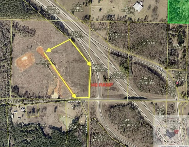 Strategic commercial location directly off exit ramp at Interstate 49 and Miller County 10! This location would be perfect for convenience store & gas station, RV park, manufacturing facility or shipping and receiving yard. 26 miles to Louisiana, 9 miles to downtown Texarkana, located between Dallas and Little Rock. Property is cleared with 3 phase power on MC10, access to city water and city gas on MC 10, outside of city limits which offer flexibility. THIS IS PIECE OF 34.48 ACRE TRACT LISTED SEPARATELY.