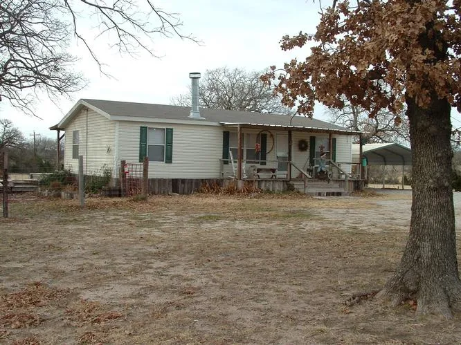 COUNTRY LIVING AT ITS BEST - describes this 9.38 acres with a 3/2/2 Double Wide with fireplace, which includes 2 barnes, 2 water wells, 2 porches and gorgeous view of creek with pecan trees.