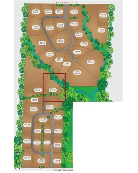 Welcome to Crawford Creek Estates. Jackson Counties NEWEST Premier Rural Acreage Community. Crawford Creek Estates Consists of 236 acres featuring 38 Private Estate sized acreage lots with hardwired broadband internet and 360-degree breathtaking views. These 38 lots range in size starting at 3 acres and vary all the way up to 22 acres and provide the unique opportunity for you to BUY NOW and BUILD LATER. Crawford Creek Estates highlights a variable topography which allows for flat, daylight, and walkout foundations. Running through the middle of this scenic 236 acres includes Crawford Creek itself which showcases its natural beauty with an abundance of wildlife, mature timber, and the comforting soundscape of rural Jackson County. Each one of our lots entail many features to attract a plethora of buyers. This scenic community is included in the Lee's Summit School district, and is just a short drive to shopping, schools, and other modern-day conveniences. We look forward to assisting you with calling Crawford Creek Estates Home.