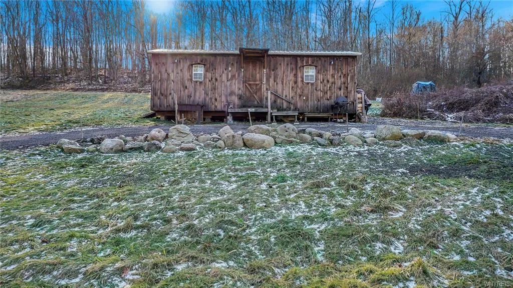 Are you ready to own your own private piece of paradise? This quaint "cabin" retreat is nestled on the hillside on just under 10 beautiful acres. The perfect spot for all outdoor recreation activities! Enjoy hunting, four wheeling, camping, or just a quiet weekend getaway. Currently set up with awesome elevated hunting blind. Newly built 2016 cabin / shed (12 x 30) with metal roof is set up to comfortably sleep 4. Great bar/eating area and wood burning stove to keep you toasty warm. Fridge, stove and storage lockers included. Electric service will be required if buyer desires. Current owner uses a portable generator. Outhouse also in place near cabin. This parcel would also be ideal to build your dream home overlooking the pretty wooded scenery! In the country but still close to amenities. 15 min from Springville, 25 min to Ellicottville, 20 min to Kissing Bridge, 45 min to Buffalo and only 5 miles from Lime Lake. No well, septic or electric are not on property.