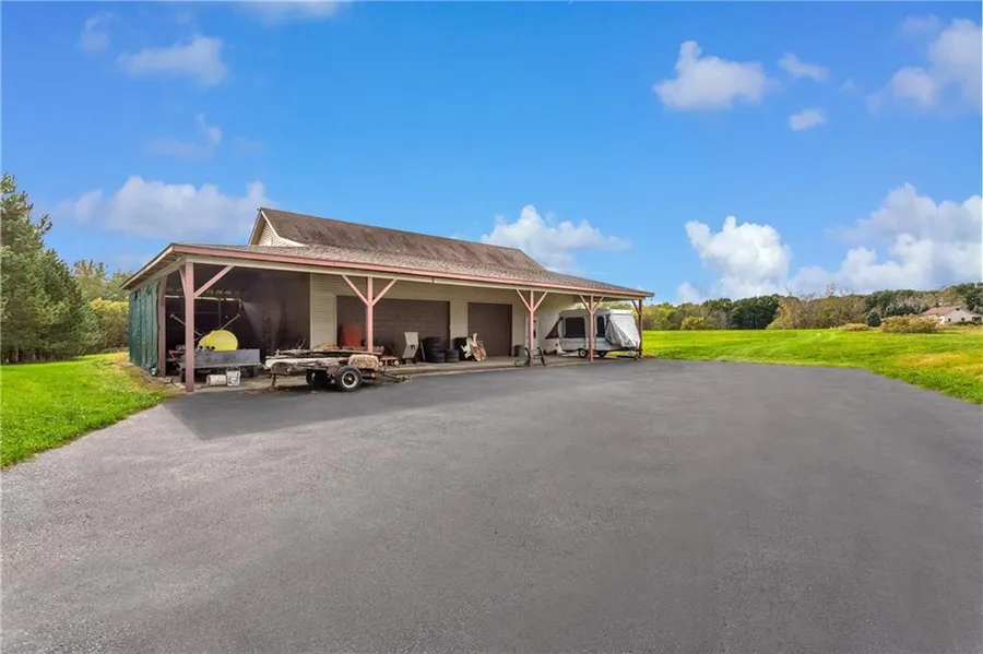 AMAZING OPPORTUNITY! Pristine & level land to build your dream home on! This 9.5 acre lot features beautifully cleared land with a wooded section, blacktopped driveway leading to a huge outbuilding that is 51' x 33' with an additional covered overhang section of 1,552 sq. ft. and electric, public water & gas at the street. The outbuilding features a concrete slab with three garage bays and 1,683 sq. ft. on the first floor, plus a second floor storage area or possible living space with an additional 1,000+ sq. ft. This premier location is minutes to the Village of Honeoye Falls, Village of Pittsford Mendon Ponds Park! Plus a short distance to 390/590 and Eastview Mall! This is the perfect combination of scenic country land, a large outbuilding for all the toys & being close to everything!